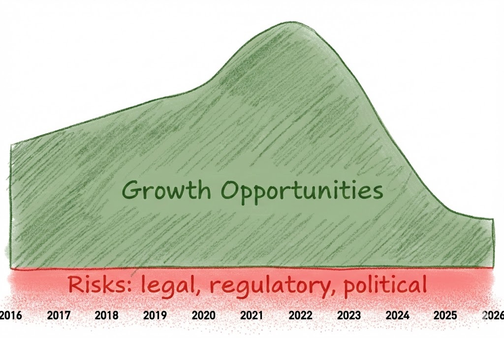 This has left the owners with a peculiar company: excellently run but with few growth opportunities and ever-present risks. Those risks which have always been lingering used to be more than compensated by the enormous upside potential of the opportunity set. Not as much anymore.