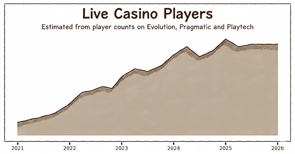 Most of this time, Evolution had the best games, an outstanding execution and the largest scale, as it still has today. However, that extraordinary growth was mainly made possible by the continuous arrival of new players to online casinos.